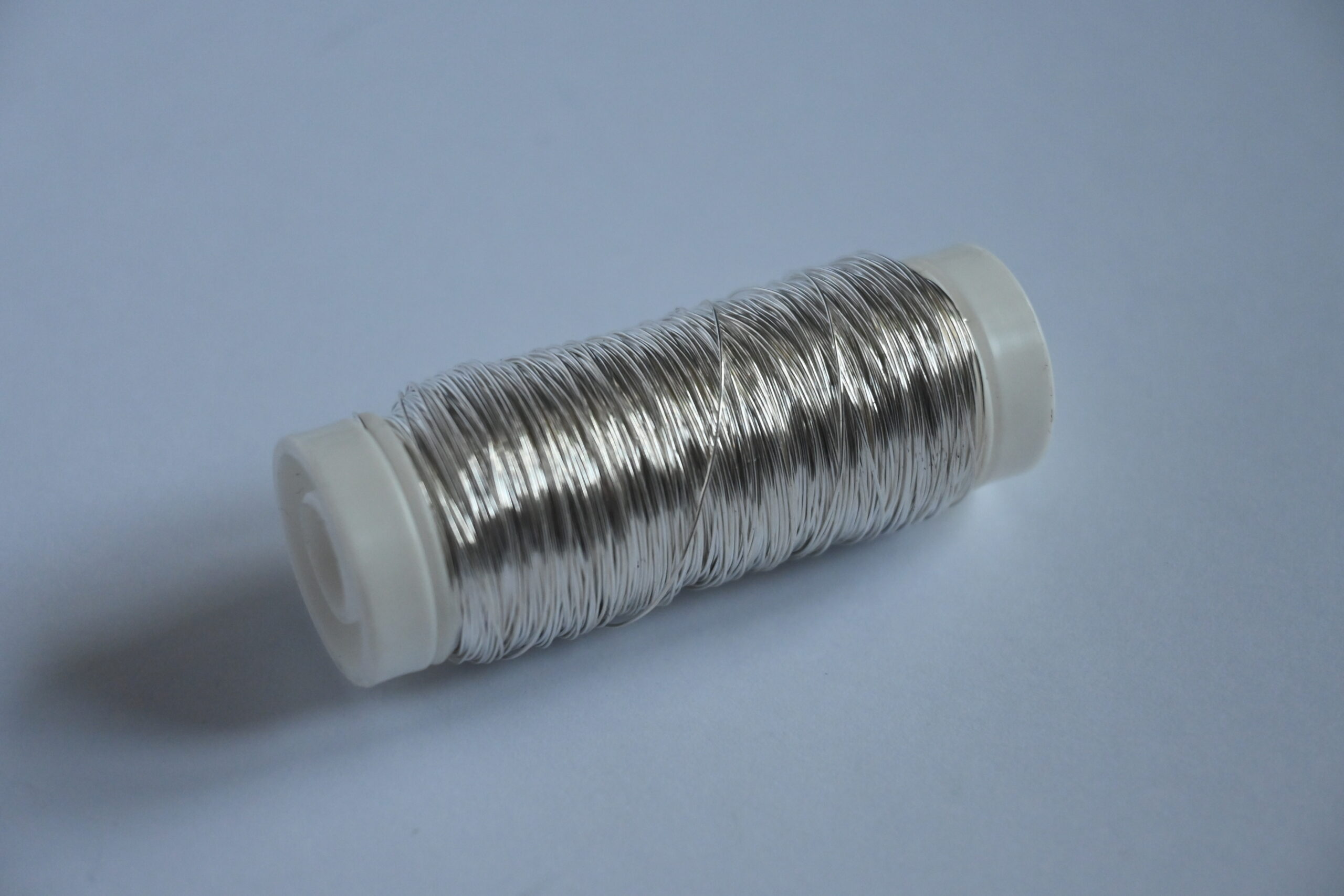 Cienki, gładki, lakierowany drucik florystyczny nawinięty na plastikową szpulę w kolorze srebrnym. Bardzo plastyczny, sprawdzi się w wielu kompozycjach florystycznych jak i przy wyrobie biżuterii. Średnica 0,3 mm, waga 50g.