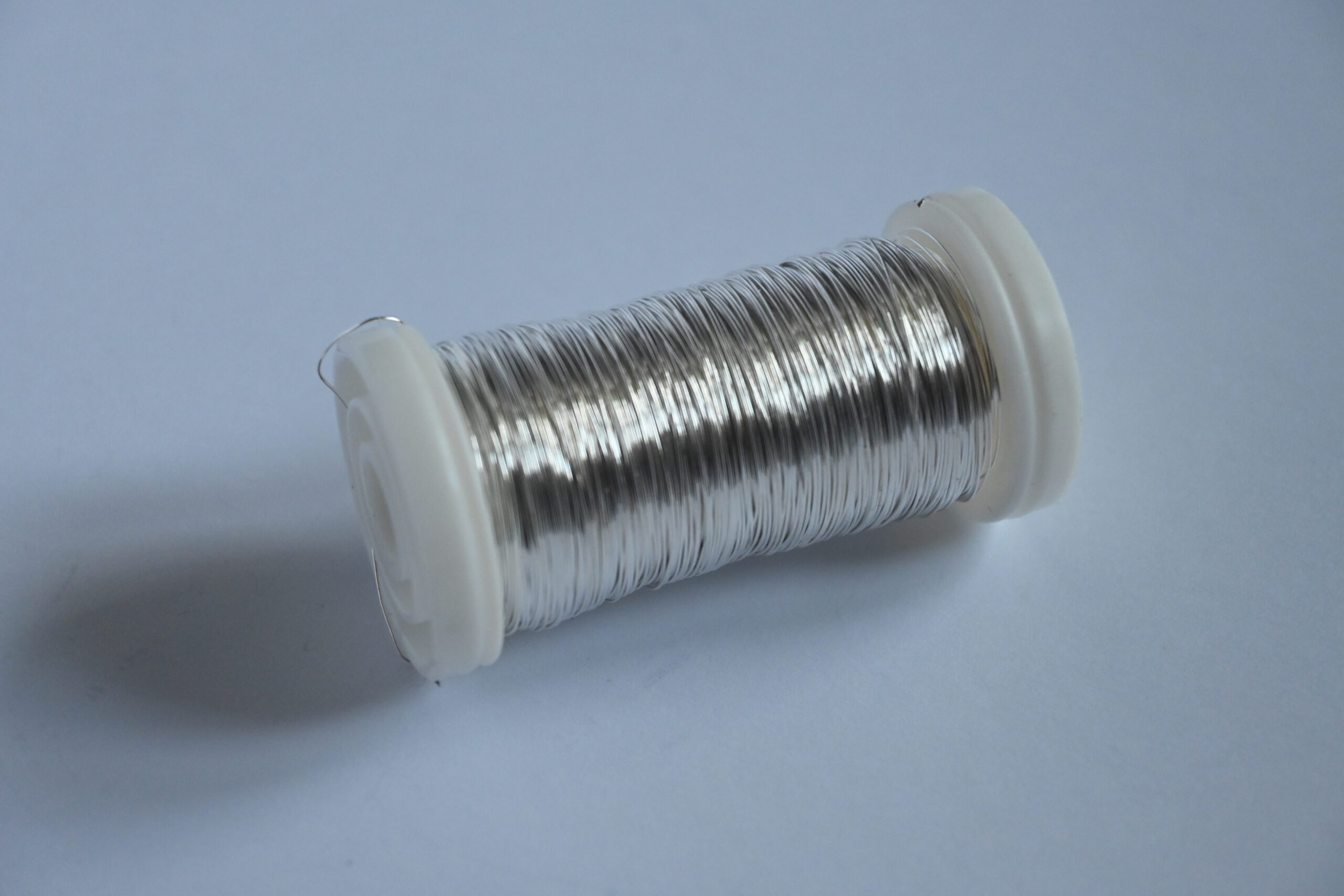 Cienki, gładki, lakierowany drucik florystyczny nawinięty na plastikową szpulę w kolorze srebrnym. Bardzo plastyczny, sprawdzi się w wielu kompozycjach florystycznych jak i przy wyrobie biżuterii. Średnica 0,3 mm, waga 75g.