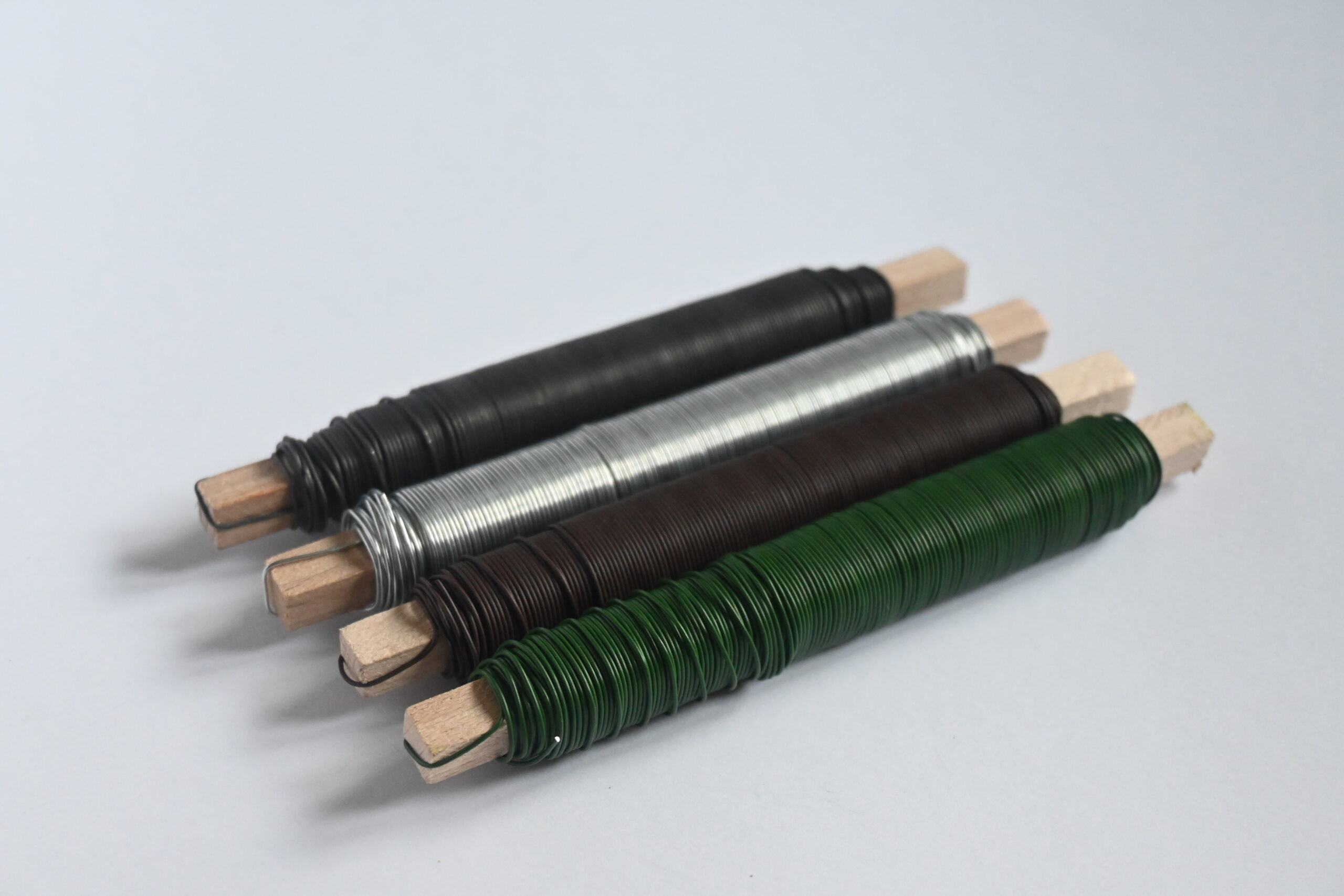Drut florystyczny na drewnianym kołku, wyrobowy o średnicy ok. 0.7 mm, długość 30 metrów.