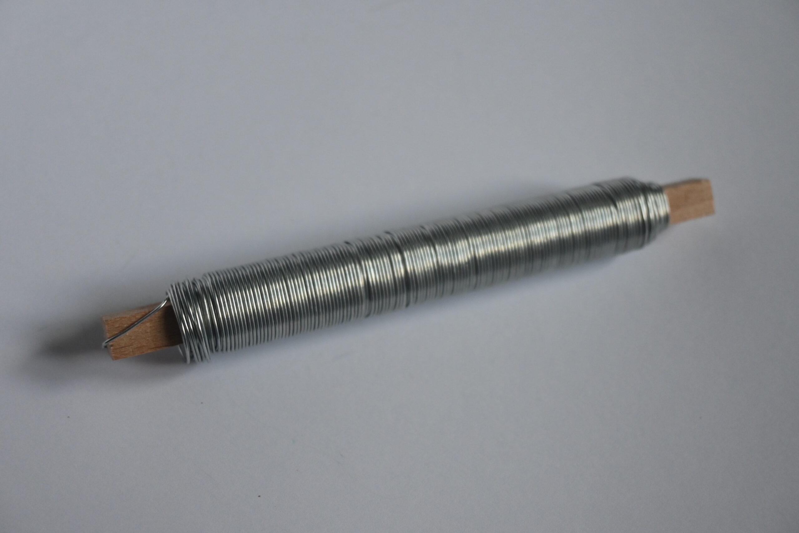 Drut florystyczny na drewnianym kołku, wyrobowy o średnicy ok. 0.7 mm, długość 30 metrów wykonany z drutu ocynkowanego. Elastyczny dobrze się formuje, wygodny w pracy.
