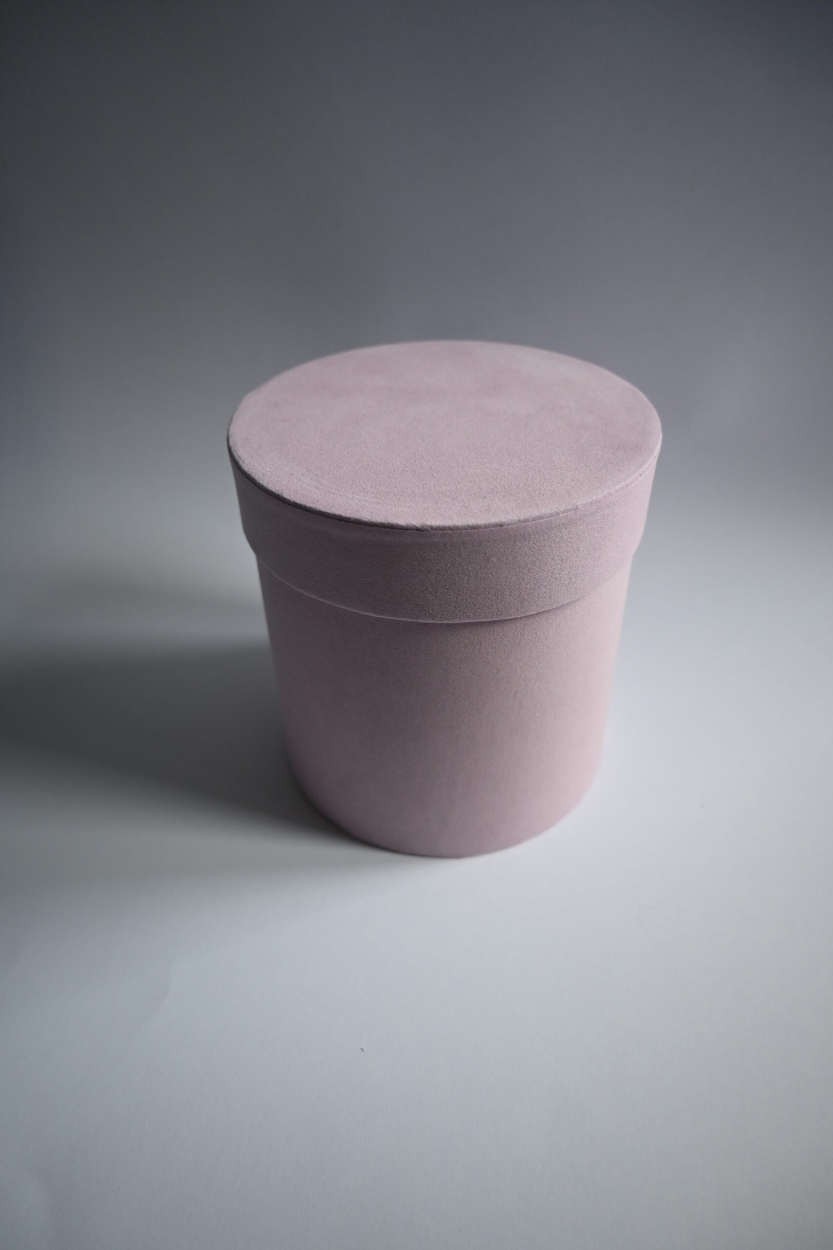 Minimalistyczne, dekoracyjne pudełko florystyczne z welwetową powierzchnią, gładkie, bez napisów.
